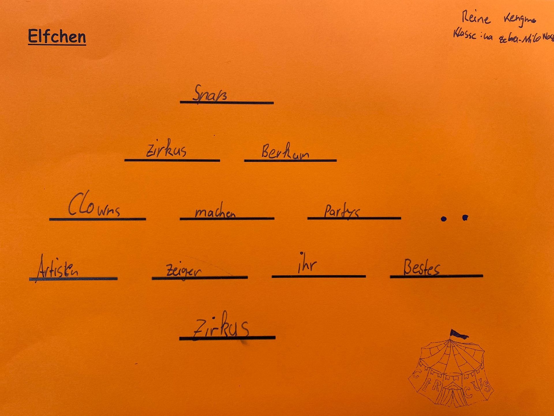 Im Unterricht wurde das Thema "Zirkus" natürlich auch thematisiert. So schrieb die Klasse 4 verschiedene Gedichtsformen zum Zirkus.